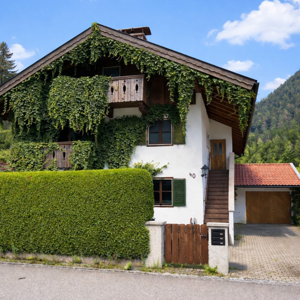 Unser Haus befindet sich in landschaftlich sehr ruhiger sonniger Lage mit Blick auf Karwendel-, Arnspitze und Wettersteingebirge. Diesen wundervollen Blick können Sie von zwei Balkonen aus geniessen.